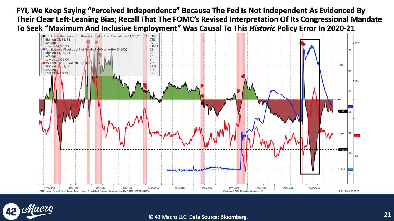 FYI, We Keep Saying “Perceived Independence” Because The Fed Is Not Independent As Evidenced By Their Clear Left-Leaning Bias; Recall That The FOMC’s Revised Interpretation Of Its Congressional Mandate To Seek “Maximum And Inclusive Employment” Was Causal To This Historic Policy Error In 2020–21
